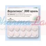 Берлитион 300 ораль - 1 таблетка, покрытая оболочкой, содержит 300 мг ? - липоевой кислоты.